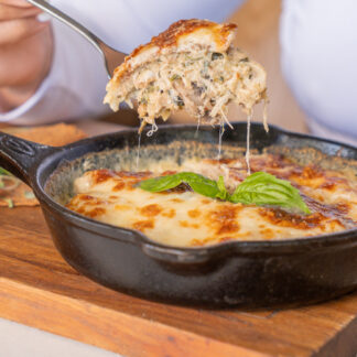 Sandwich de carne saltada, pimentones ahumados, cebolla caramelizada, queso finesse, y lechuga, en nuestro pan horneado al instante a leña.