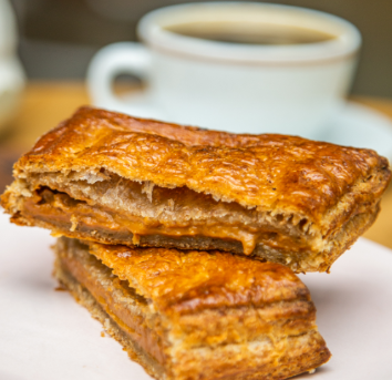 Pastelillo de Harina integral con masa madre relleno de queso crema y arequipe sin azúcar adicionada.